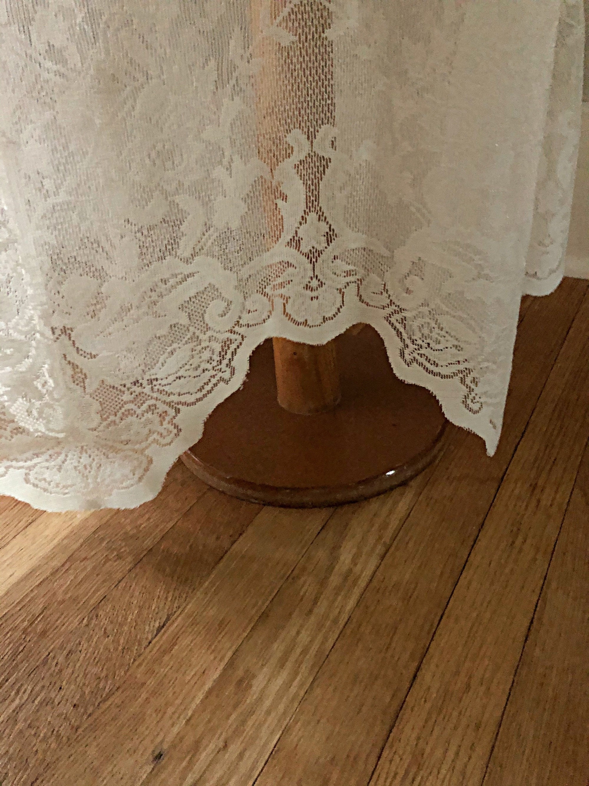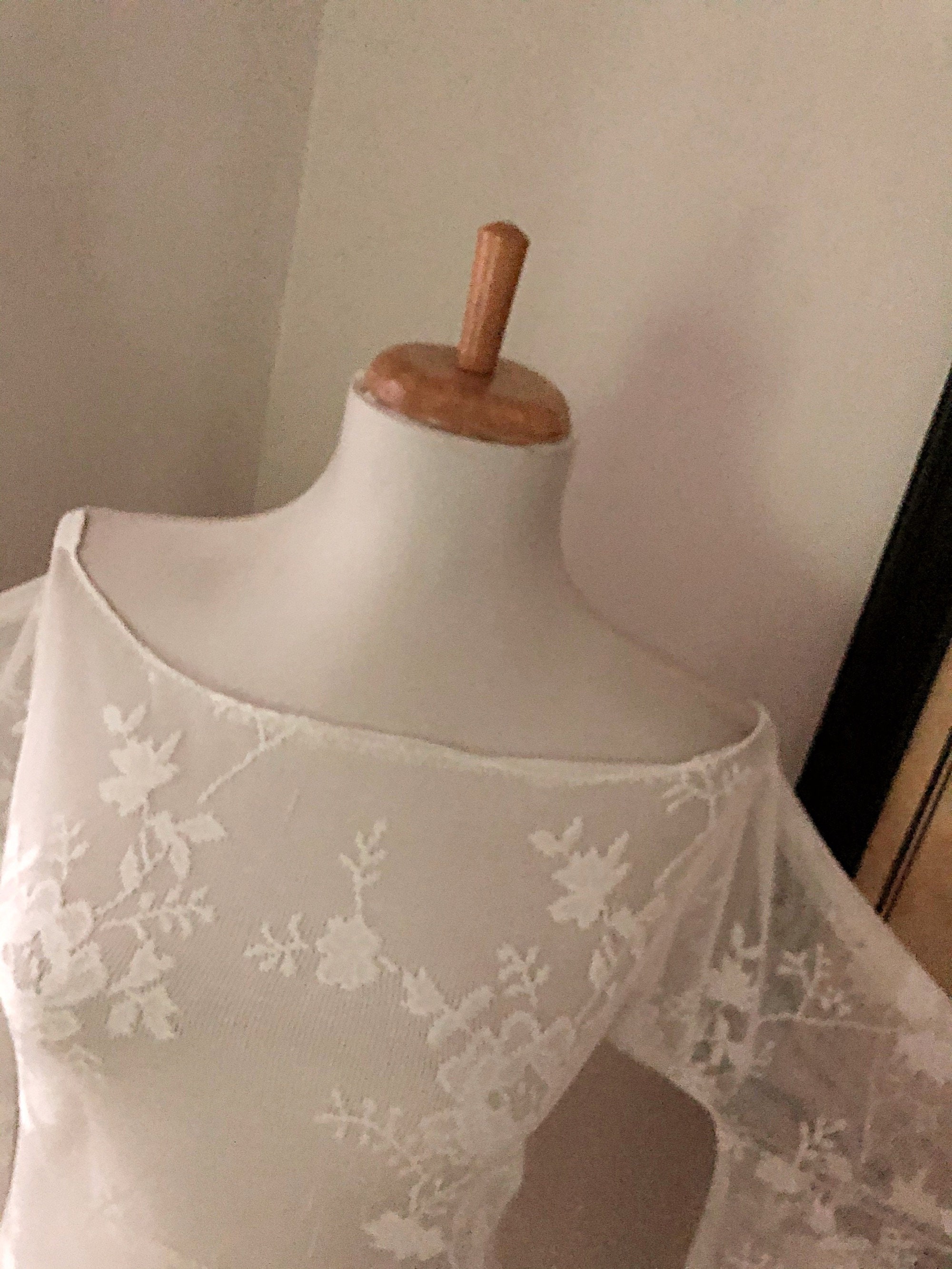 This lace used for this dress is in good condition; overall lovely. This dress has been made by hand and the vintage lace that was used has raised embroidery throughout which may make for some raised seams depending on where I have to cut and sew the lace (see neckline photos for details). Please email me if you have any questions; All sales are final.