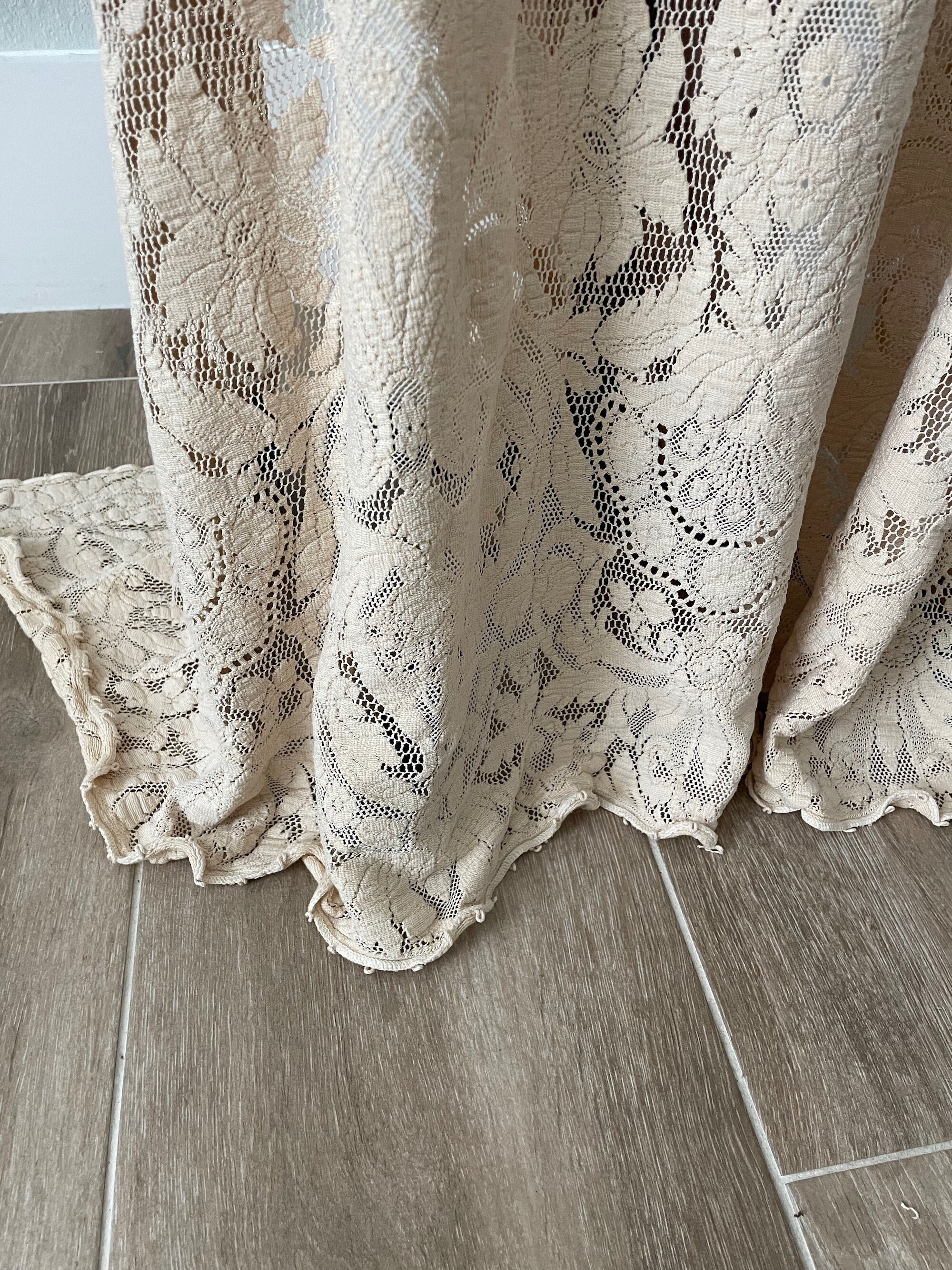 The lace used to make this dress will be in good condition. Some variation in tone is common with filet and Irish lace due to tea staining as the dye method. Always the possibly of a random spot, loose thread or mend. Vintage lace is not without minor flaws, but I do a great job of hiding anything I come across. This lace used is very old and my dresses are made by hand so do not expect perfect symmetry. Vintage lace is delicate, make sure it will fit prior to purchase. I do not offer cancellations or returns. All sales are final. Please email me if you have any questions or need more measurements.