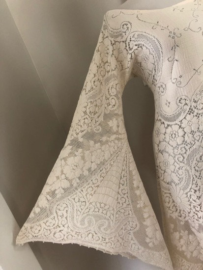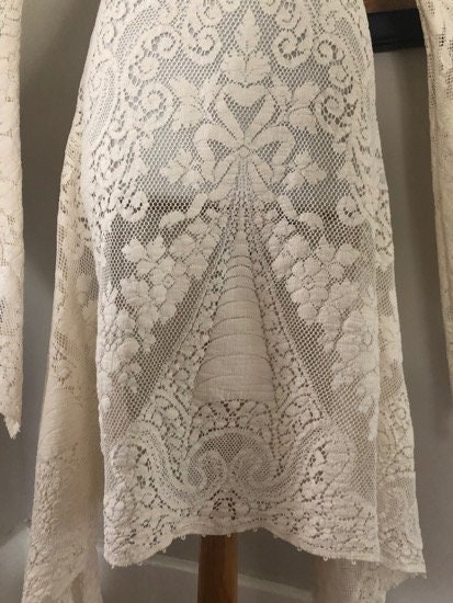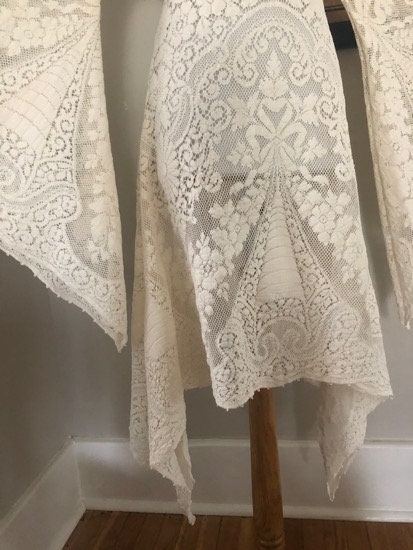 Exuding bohemian beauty with the flowy bell sleeves and asymmetrical hem, adding a touch of whimsy to your special day. Feeling confident and comfortable in a dress made just for you. Choose from standard sizes (XS-3X) or let me create a custom fit. Now that the original has sold, I will shop for another piece of lace with this pattern. If you are in a rush and can be flexible about the pattern, I can most likely process and ship your order in a few days to a week.
