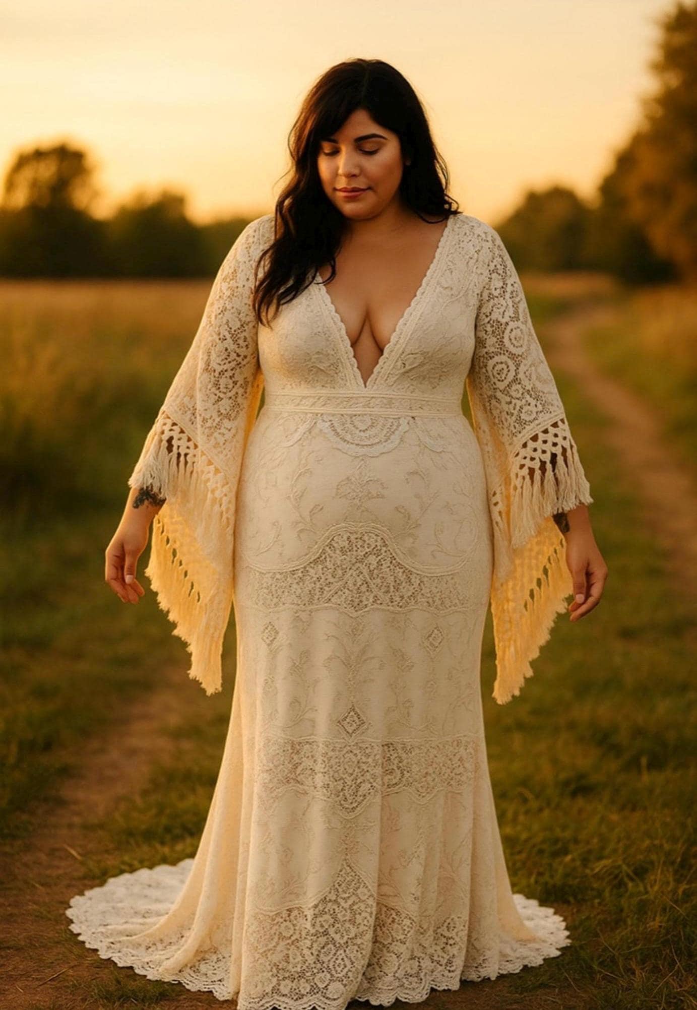Perfect For: • Boho brides of all sizes • Plus size and curvy weddings • Western or rustic ceremonies • Maternity or elopement photos • Outdoor, beach, or backyard weddings