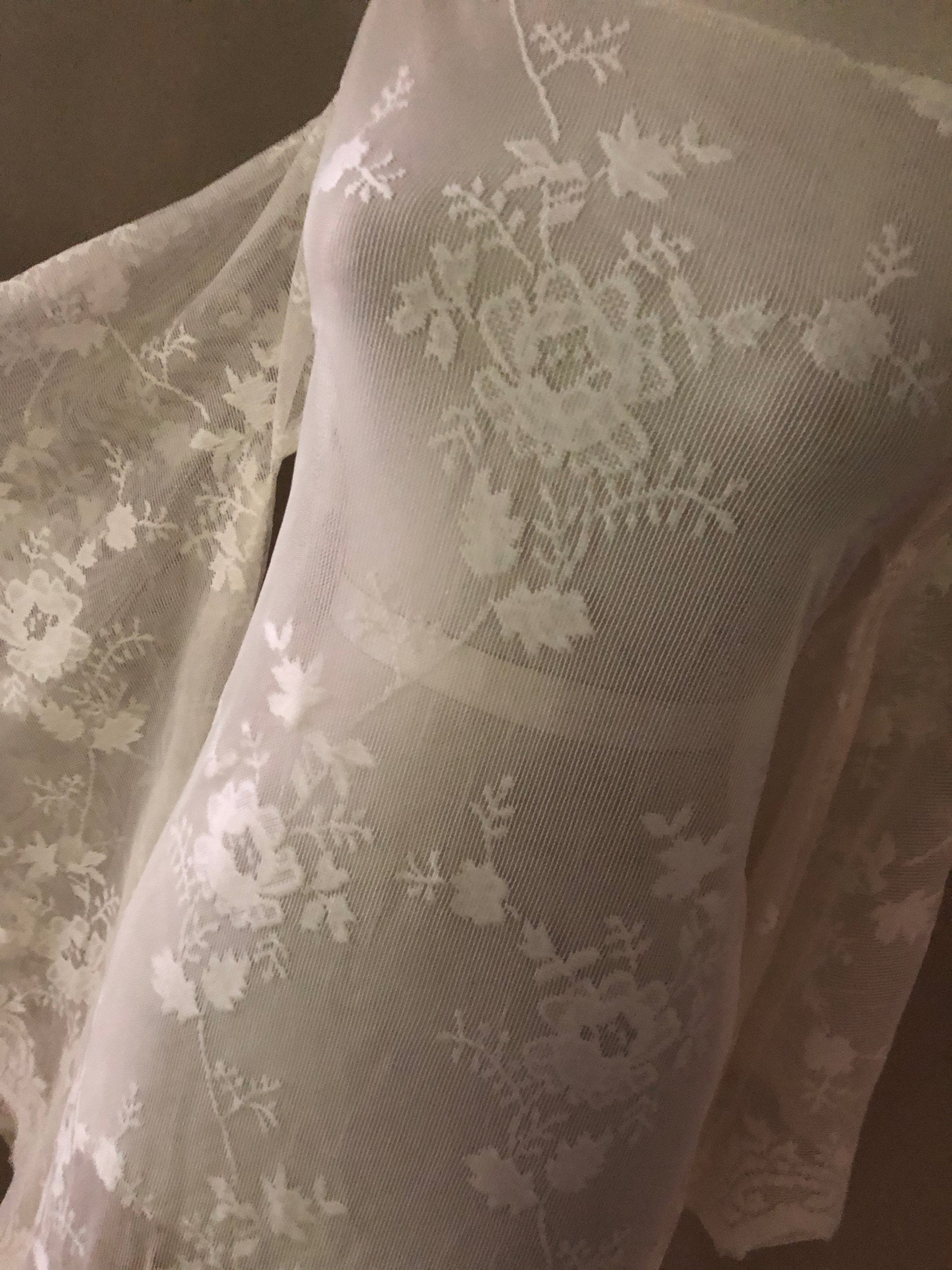 This is in good condition. Possibly a random spot, snag or loose thread/seam but nothing stood out. This is very old and has been made by hand so do not expect perfect symmetry. Vintage lace is delicate, make sure it will fit prior to purchase. I do not offer cancellations or returns. All sales are final. Please email me if you have any questions or need more measurements.